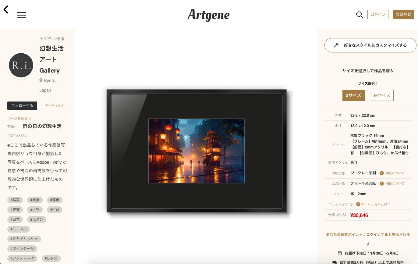 作品画像をアップロードするだけで作品を出品できて、ジークレー印刷や額装をして発送までしてくれる魅力的なプラットフォーム、それが『Artgene(アートジーン)』です。