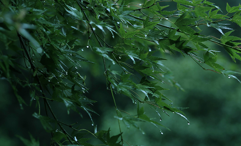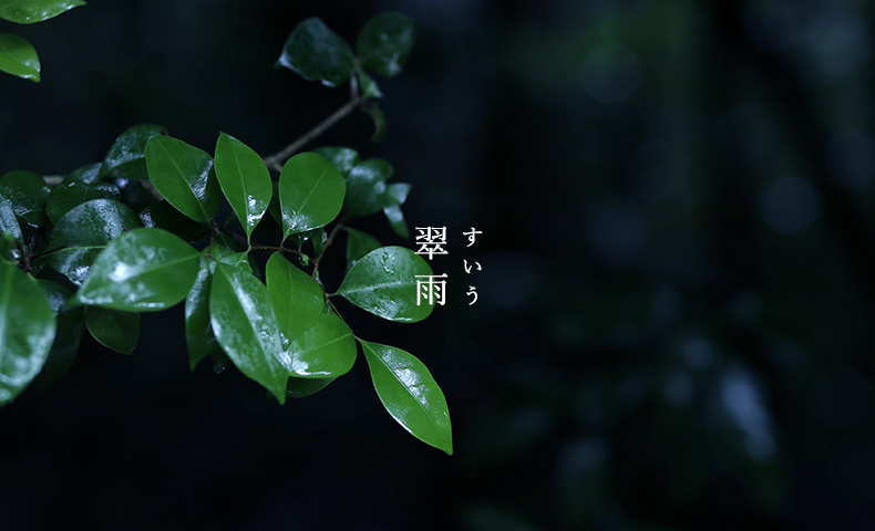 今日の雨の名前は『翠雨(すいう)』。雨にぬれた青葉が、雨の雫とぬれた表面に美しく光輝く様子を表した言葉。