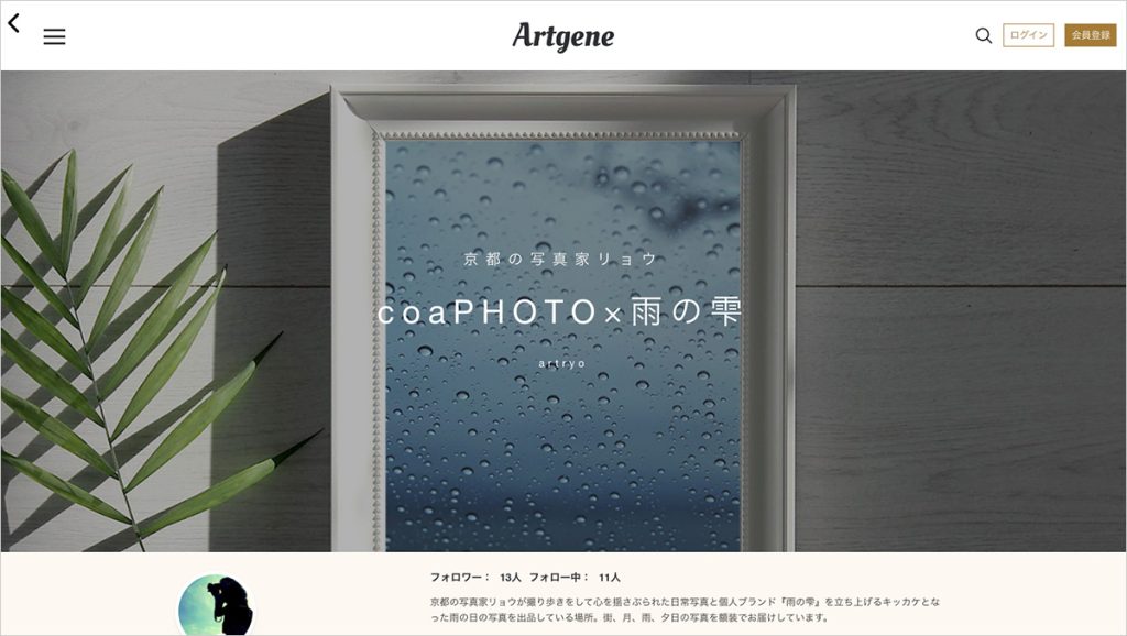 この度、雨の日の撮り歩きをして撮影した写真を、オンラインプラットフォーム『Artgene(アートジーン)』より出品がスタートいたしました。