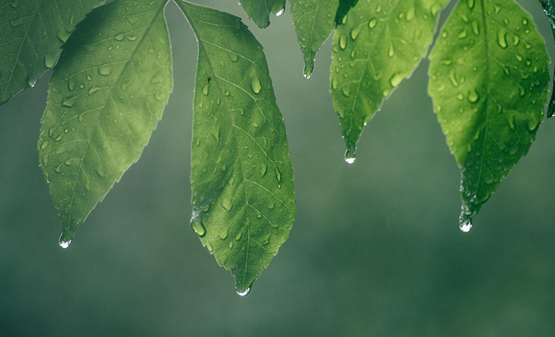 葉の上に一粒ずつ溜まった水が、やがてひとつの雫となって落ちる、その一瞬の美しさ。